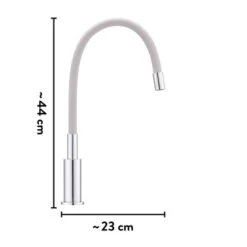 Die baliv Küchenarmatur KI-1820 ist mit ihrem flexiblen Silikon-Auslauf in Taupe und der schicken Chromoptik ein stylisches Element in deiner Küche. Ihr modernes Aussehen passt zu vielen Einrichtungen. Damit dich die Armatur im Alltag unterstützt, besitzt sie tolle Funktionen. Der flexibel verstellbare Schlauch verbleibt in jeder möglichen Form und ist damit besonders praktisch, um zum Bespiel das Spülbecken zu reinigen. Der Spaß beim Formen und Biegen des Schlauches ist inklusive. Um 360° lässt sich der Auslauf der Armatur schwenken. So gelingt dir die Reinigung deines Spülbeckens im Handumdrehen.