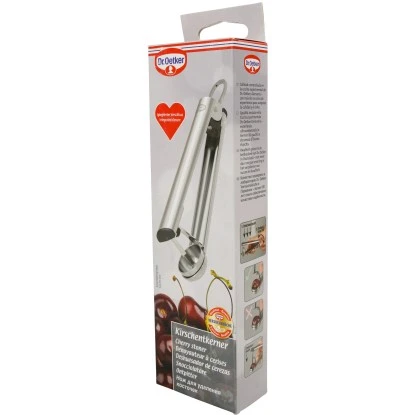 Der spülmaschinengeeignete Kirschentkerner von Dr. Oetker ist ein echter Küchenhelfer aus Edelstahl zum leichten Entkernen von Kirschen. Mit integriertem Verschlussmechanismus lässt er sich platzsparende verstauen.