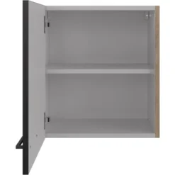 Der Flex-Well Exclusiv Oberschrank Capri 50 cm x 55 cm Schwarz Matt-Endgrain Oak überzeugt durch eine geradlinige Formgebung und zeichnet sich durch ein modernes Ambiente aus. Dabei bietet Ihnen der hochwertige Oberschrank ein reizvolles Design in der Farbe Schwarz Matt kombiniert mit Endgrain Oak und eignet sich optimal als passende Ergänzung zur gleichnamigen Küchenserie. Der Oberschrank verfügt neben einer Drehtür auch über einen verstellbaren Einlegeboden und garantiert Ihnen so auf kleinen Flächen ein Höchstmaß an Stauraum. Die Lieferung erfolgt zerlegt zum Selbstaufbau. Die Türeinstellung erfolgt mittels dreidimensional verstellbarer Ganzmetallscharniere. Eine aussagekräftige Aufbauanleitung liegt im Paket.