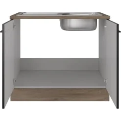 Der Spülenunterschrank wird Ihnen zerlegt geliefert und eignet sich zur einfachen Selbstmontage.