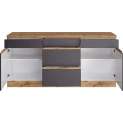 Mit dem Unterschrank Turin von Held Möbel mit hochwertigen MDF-Fronten können Sie ihre Küchenzeile perfekt ergänzen. Hinter den Drehtüren befinden sich je zwei Ablagefächer ergänzt werden diese durch zwei Auszüge und drei Schubkastenelemente. Optisch begeistert der Unterschrank durch die klaren Linien sowie die zweifarbige Gestaltung. Da der Schrank in zwei Farbkombinationen verfügbar ist, können Sie die Küche im Mix-and-Match Stil einrichten.
