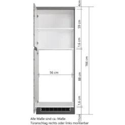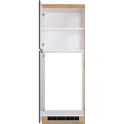 Mit dem Kühlschrankumbauschrank Turin von Held Möbel mit hochwertigen MDF-Fronten können Sie ihre Küchenzeile perfekt ergänzen. Optisch begeistert der Schrank durch die klaren Linien sowie die zweifarbige Gestaltung. Da der Schrank in zwei Farbkombinationen verfügbar ist, können Sie die Küche im Mix-and-Match Stil einrichten. Ein zusätzliches Staufach für haltbare Lebensmittel und andere Küchenutensilien findet sich über der Kühlschrank-Nische.