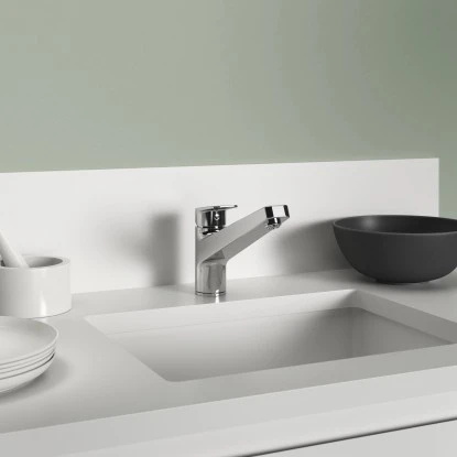 Die Ideal Standard Küchenarmatur Ceraplan entworfen vom renommierten Designstudio Palomba Serafini Associati, überzeugen auf der ganzen Linie. Prägnantes Merkmal der klassischen Ausführung ist der sich verjüngende Gussauslauf, welcher sich harmonisch in den Armaturenkörper integriert. Die Modelle mit hoch angesetztem Rohrauslauf bieten alternative Ergonomie durch die seitliche Betätigung. Alle Ceraplan Küchenarmaturen profitieren von den überzeugenden Merkmalen der langlebigen firmaflow®-Die Ideal Standard Küchenarmatur Ceraplan entworfen vom renommierten Designstudio Palomba Serafini Associati, überzeugen auf der ganzen Linie. Prägnantes Merkmal der klassischen Ausführung ist der sich verjüngende Gussauslauf, welcher sich harmonisch in den Armaturenkörper integriert. Die Modelle mit hoch angesetztem Rohrauslauf bieten alternative Ergonomie durch die seitliche Betätigung. Alle Ceraplan Küchenarmaturen profitieren von den überzeugenden Merkmalen der langlebigen firmaflow®-Kartusche und sind somit ein Highlight in jeder Küchenumgebung.