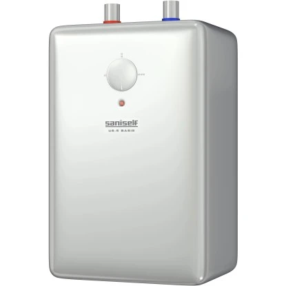 Druckloser Kleinspeicher mit 5 Liter Inhalt zur Versorgung einer Zapfstelle. Stufenlose Temperaturwahl bis 80 °C.