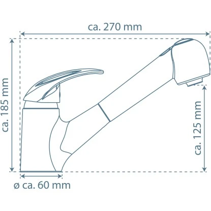 – Mit Geschirrbrause mit Brauseschlauch ca. 150 cm und 2 Strahlarten