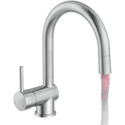 Die Schütte LED-Spültischarmatur Stella Chrom ist mit elegantem Rundbogenauslauf Auslauf und 360° Schwenkbereich für einen komfortablen Aktionsradius ausgestattet. Die komfortable Einhand-Bedienung sorgt für mehr Bewegungsfreiheit im Spülbereich. Die Hochdruck-Armatur Grande verfügt über einen Kalt- und einen Warmwasseranschluss (zwei Flexschläuche im Lieferumfang). Durch den temperaturgesteuerten Farbwechsel wird das Verbrüh-Risiko (Blau: 42°C) minimiert. Farbwechsel basiert auf Wasserkraft, dadurch werden keine Batterien benötigt. Die LED-Spültischarmatur Stella verfügt über energiesparende Cold-Start-Funktion die nur Zufluss von Kaltwasser bei Hebel-Mittelstellung ermöglicht. Die geräuscharme, auswechselbare Kartusche mit langlebigen keramischen Dichtungen sorgen für präzise Regelung der Durchflussmenge und Wassertemperatur. Entspricht den Bestimmungen der deutschen Trinkwasserverordnung. Alle Komponenten mit Wasserkontakt sind KTW und W270 geprüft. Vollständiges Montageset und eine leicht verständliche Montageanleitung machen die Installation zum Kinderspiel. Strenge Qualitätskontrollen und hochwertige Materialien gewährleisten hohe Sicherheit und beste Wasserqualität.