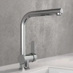 London Spültischarmatur mit Herausziehbarem Auslauf Chrom. Ressourcenschonend handeln auch im Kleinen? Dann ist diese Einhebel-Mischbatterie mit Cold-Start Technik genau richtig, denn sie gewährt bei senkrechter Position des Bedienhebels nur den Zufluss von Kaltwasser. Bei vielen Waschgängen völlig ausreichend.