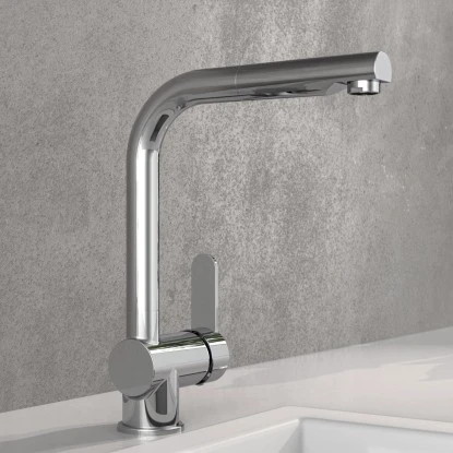 Mit dem 360° schwenkbaren Auslauf kann die Küchenarmatur komfortabel zur Seite gedreht werden und erleichtert z.B. das Säubern der Spüle. Dieser Wasserhahn ist ideal für den Einsatz auf Doppelspülbecken.