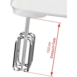 Der Handmixer verfügt über zwei austauschbare Rührbesen und zwei Knethaken aus Edelstahl, die mit Hilfe der Auswerftaste automatisch vom Gerät gelöst werden. Die Rührbesen eignen sich ideal für leichte flüssige Mischungen, wie Creme, Rührteig, Eiweiß, Sahne und vieles mehr.