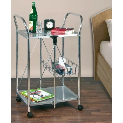Farbe: Ablageflächen: Silber, Gestell: Chrom, Rollen: Schwarz