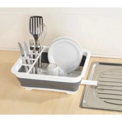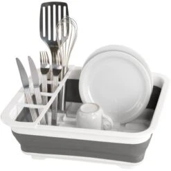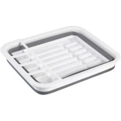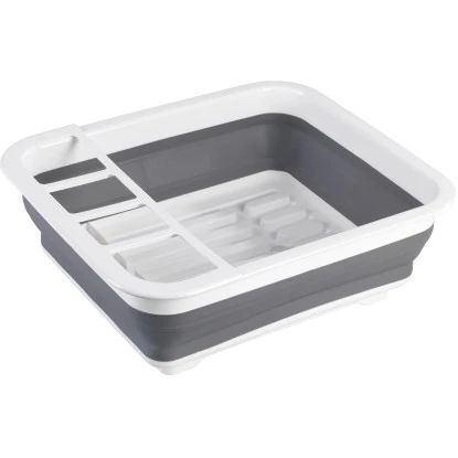 Der Wenko Geschirrabtropfständer in Grau und Weiß ist das ideale Zubehör zum täglichen Spülen in der Küche, Gartenhaus oder im Wohnmobil. Bei Nichtgebraucht lässt er sich platzsparend zusammenfalten.